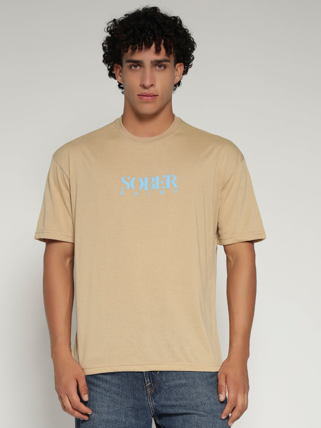 BEIGE Oversized Graphic T-Shirt with Angel Wing Back Print – Sober Saint