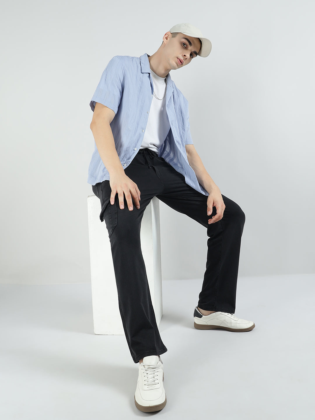Men’s Cotton Acid Wash Straight Fit Cargo Joggers – BLACK