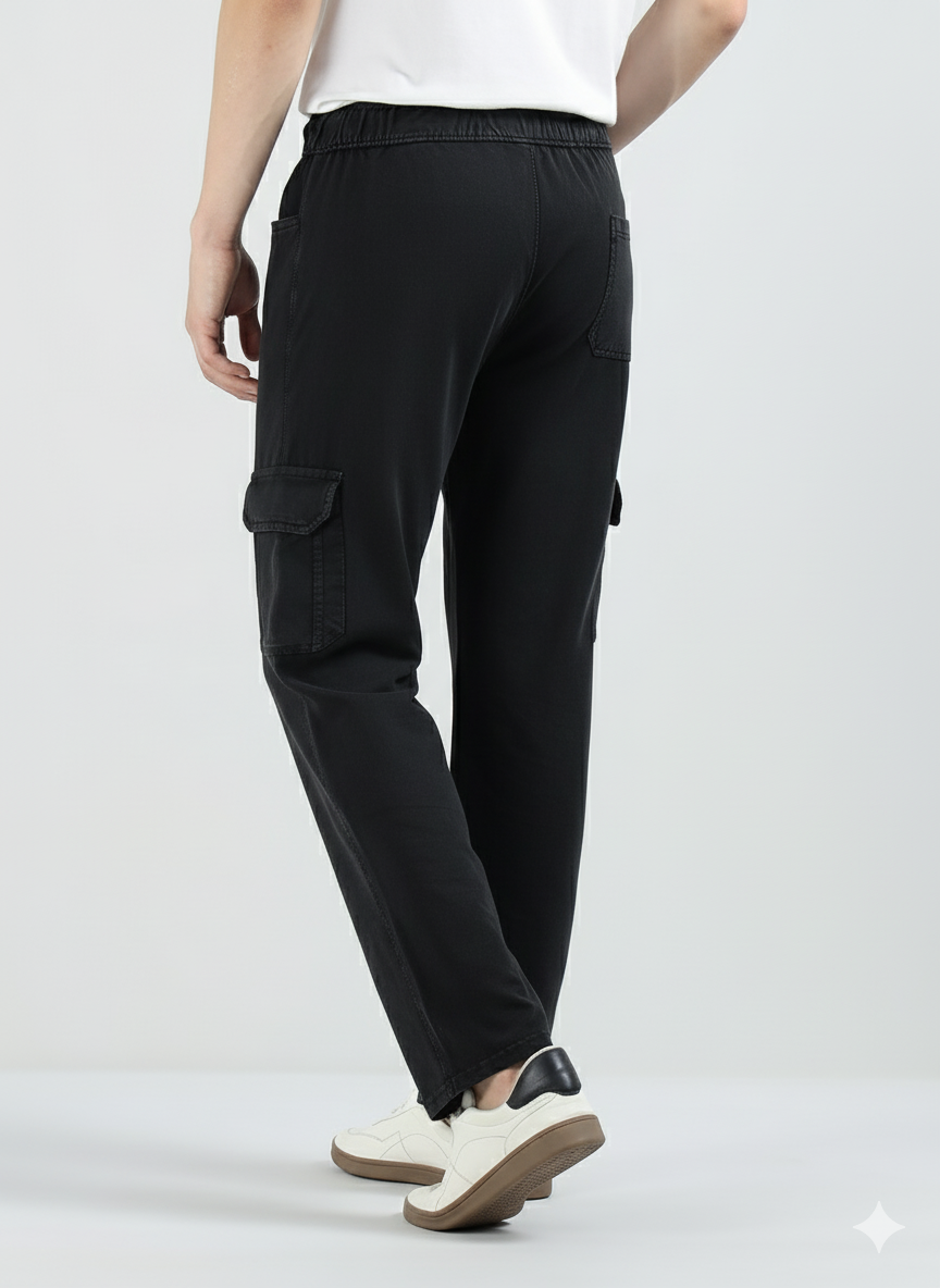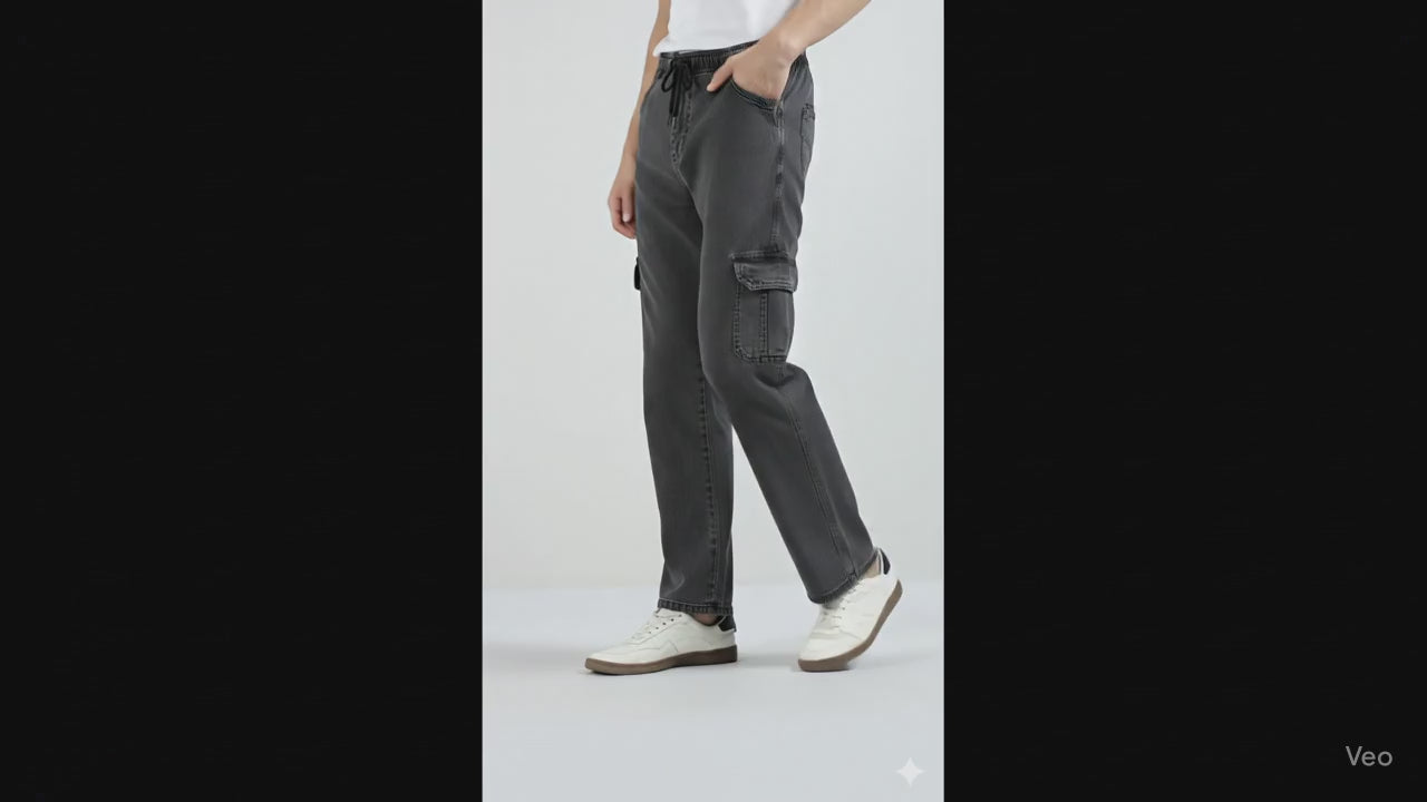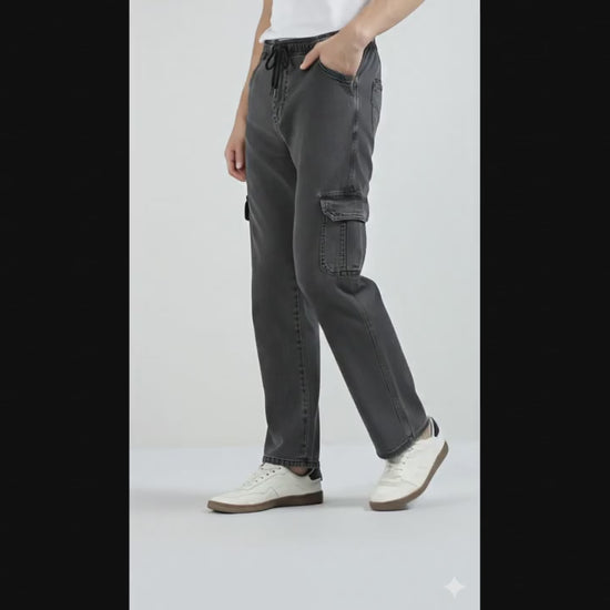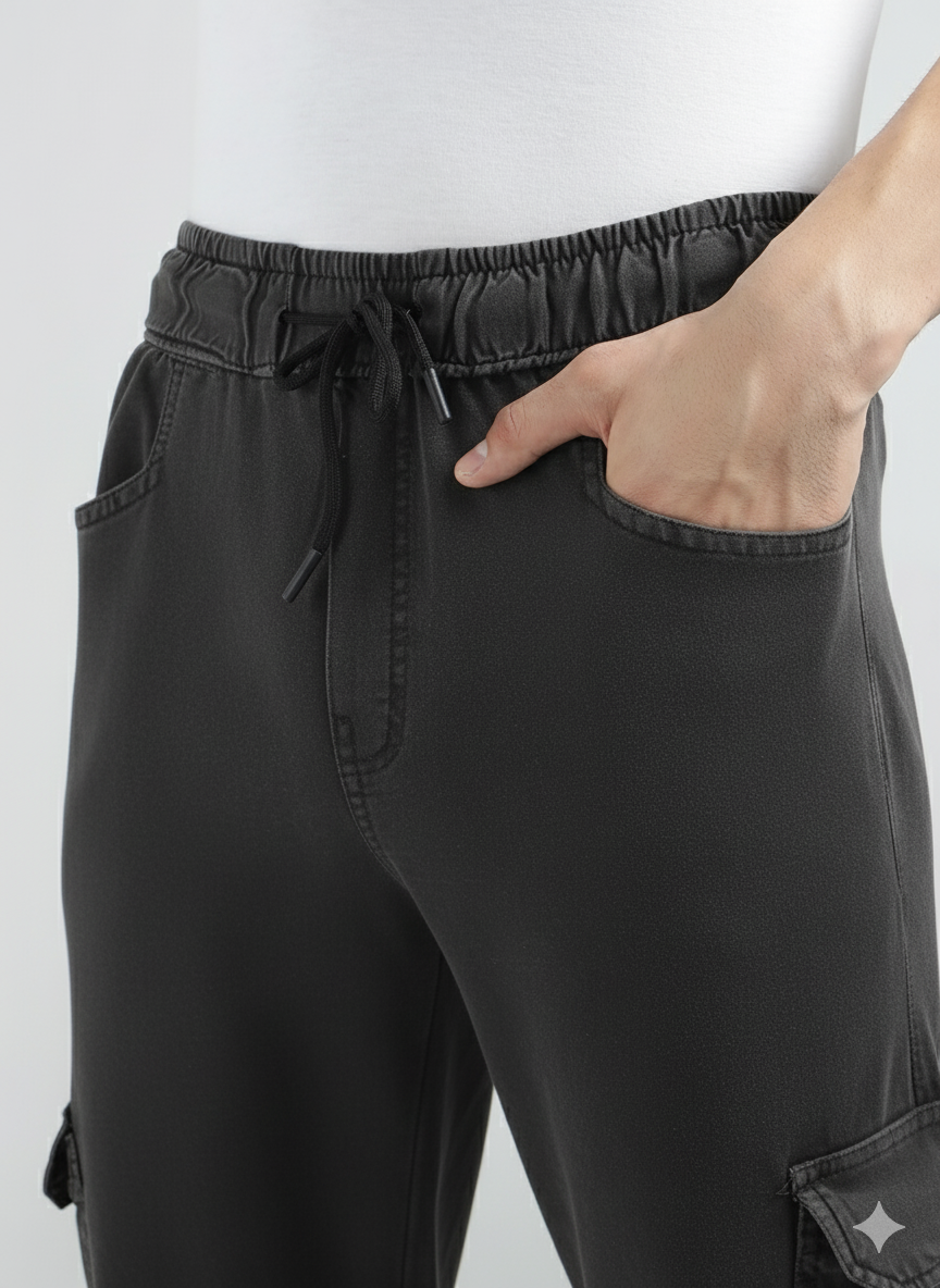 Men’s Cotton Acid Wash Straight Fit Cargo Joggers – CHARCOLE